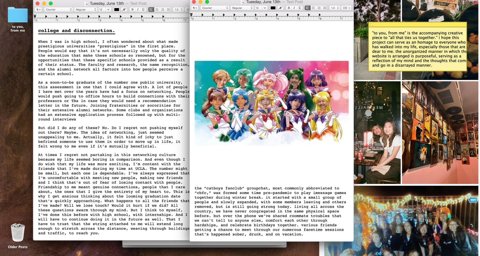 Hi! My name is Amanda. I'm currently pursuing an M.A. at UChicago after graduating from UCLA in 2023. I'm interested in using media and storytelling to connect brands with their audience.When I'm not working, you can find me writing Letterboxd reviews, documenting my travels with film photography, or curled up with a book!